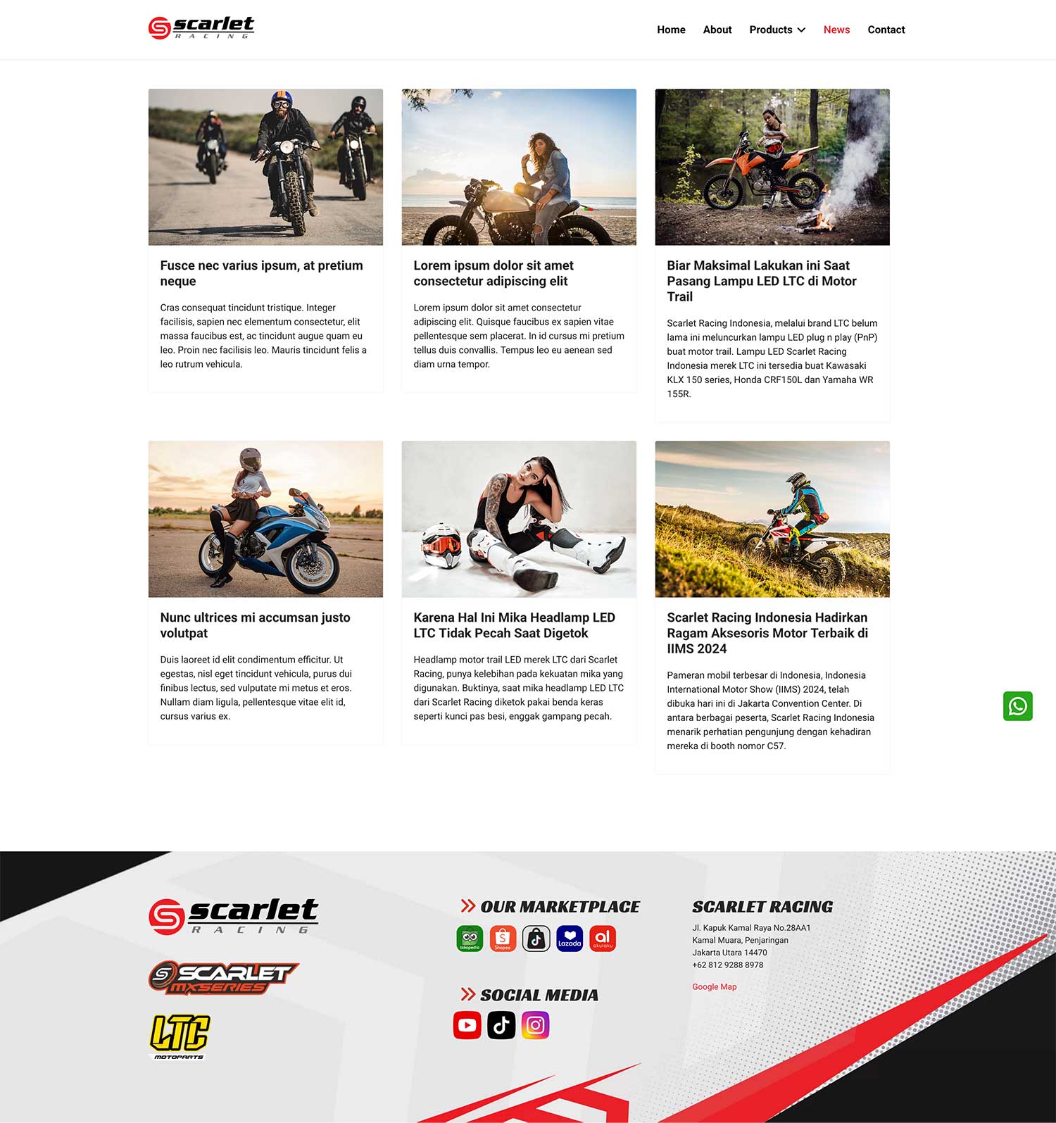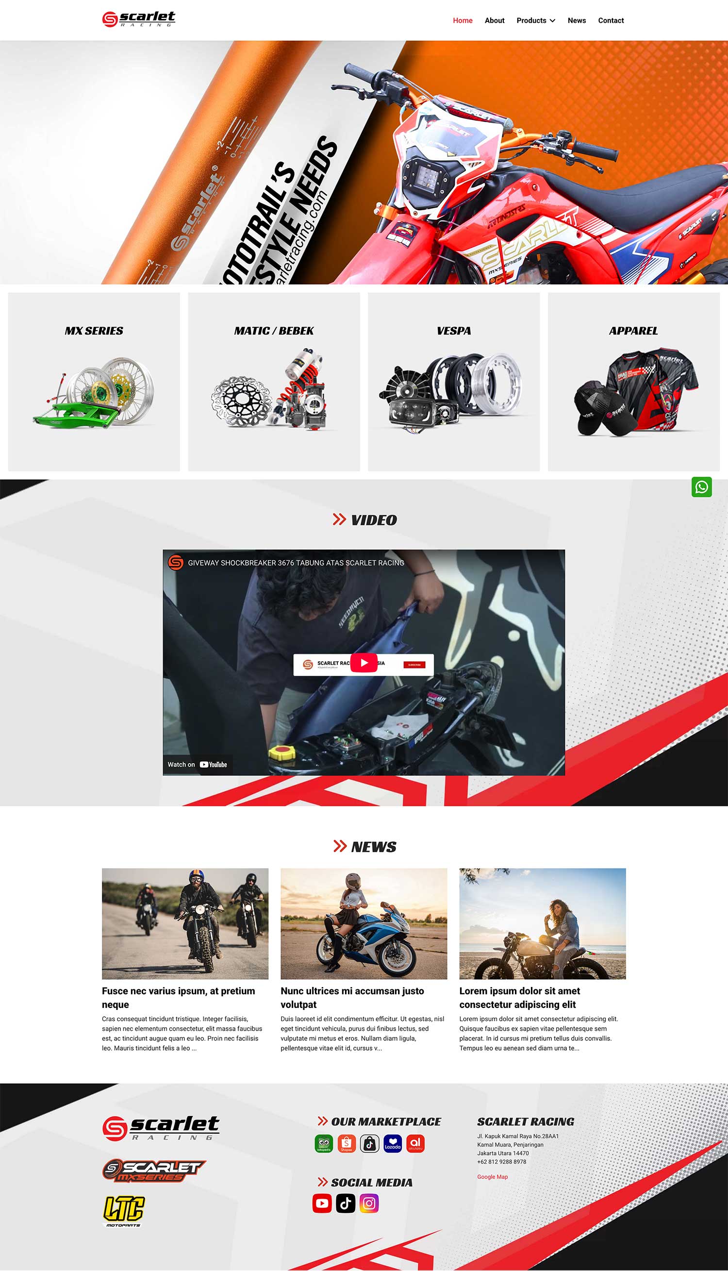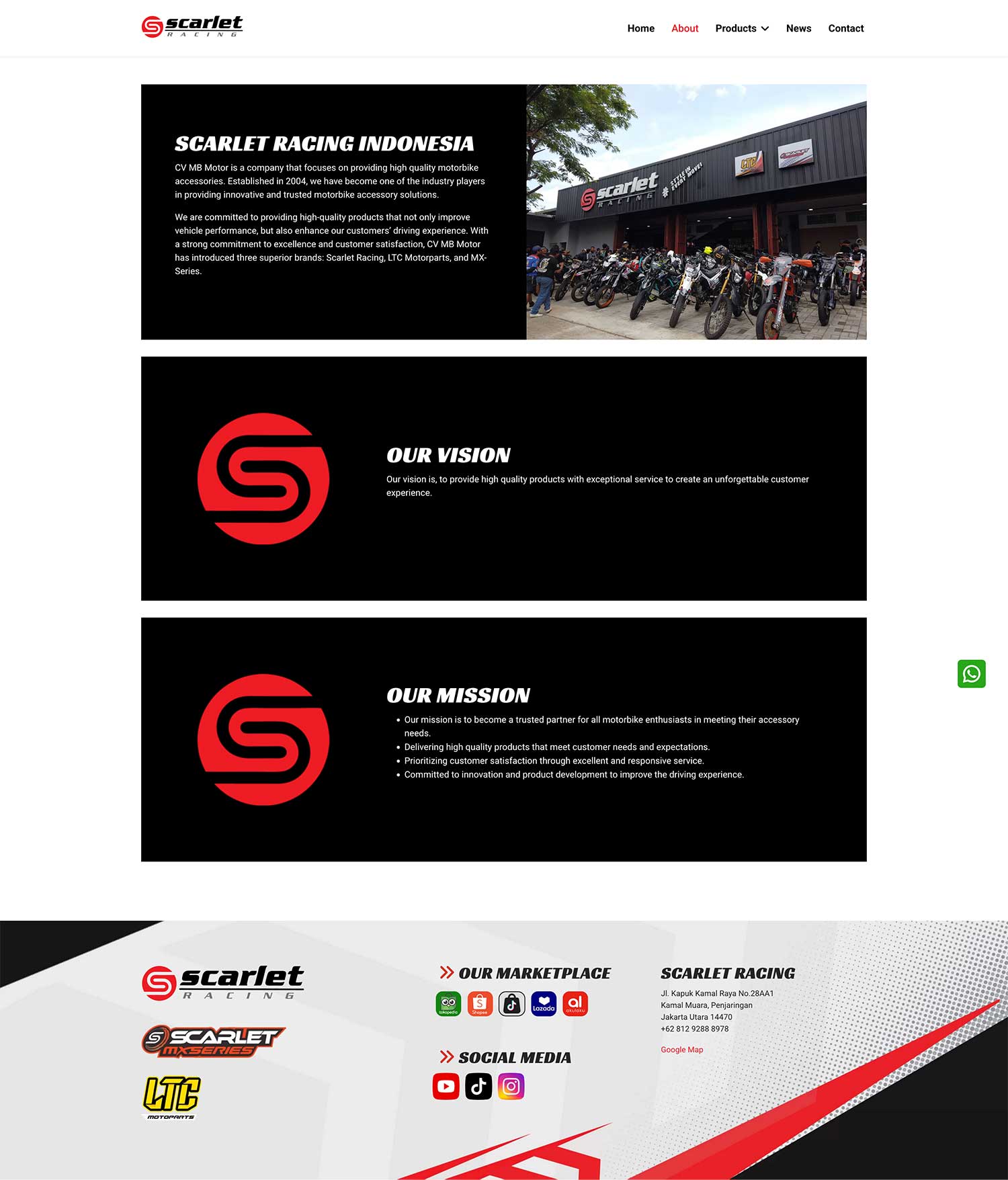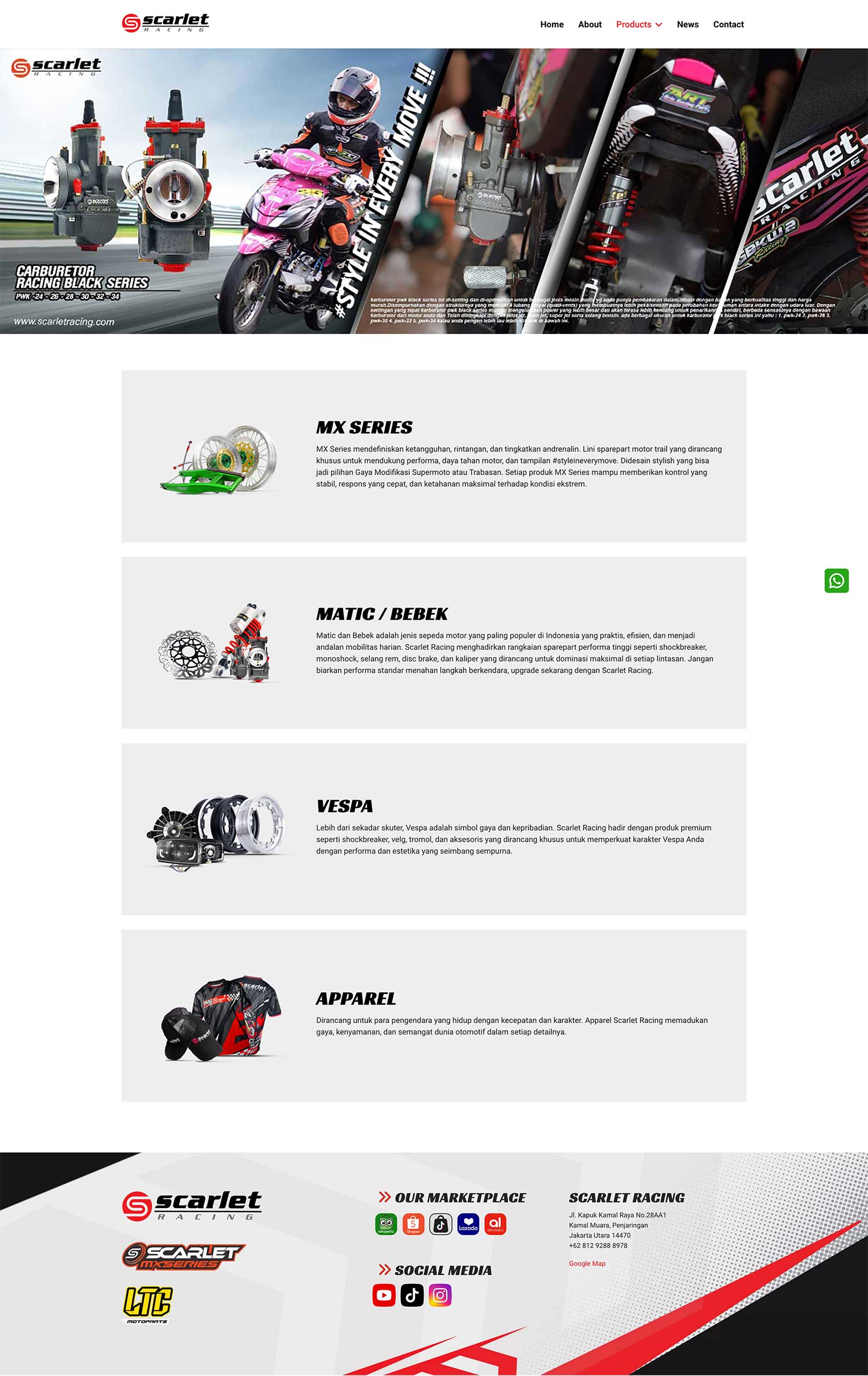 Ini adalah portfolio kami terkait proyek web design dan web development untuk Scarlet Racing. Kami fokus di industri web design dan web development sejak tahun 2009. Kami terus mengikuti perkembangan jaman dan perkembangan teknologi untuk memastikan hasil kerja yang baik untuk setiap klien kami.